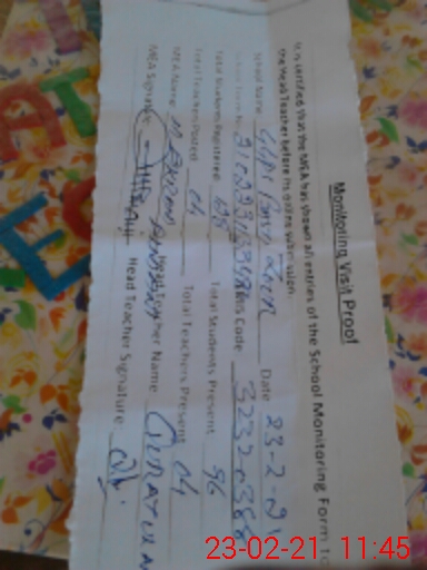 | Attendance Register | Head Teacher | MEA with School | Visit Proof |