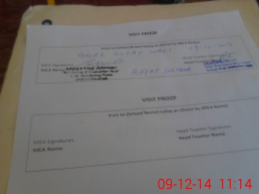 | Attendance Register | Head Teacher | MEA with School | Visit Proof |