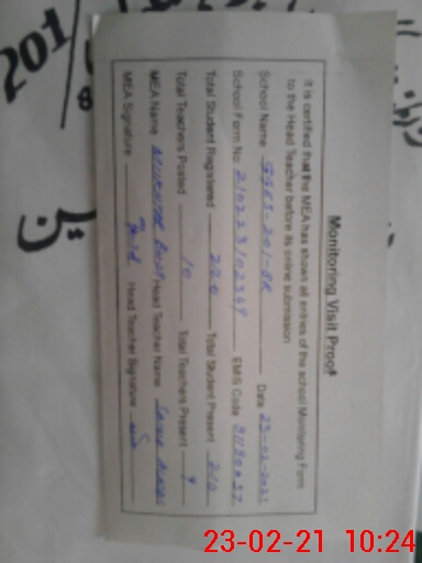| Certified that this School was Inspected by the Undersigned MEA/DMO Today and the Information Stated Above is as Per Record. | |||||