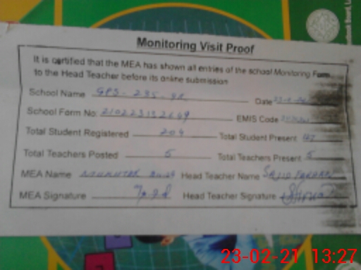 | EMIS Code: 31130201 | Name of School: GPS CHAK 235/9-R | |||