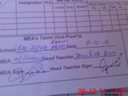 | Attendance Register | Head Teacher | MEA with School | Visit Proof |