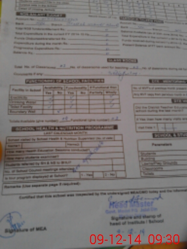 | Certified that this School was Inspected by the Undersigned MEA/DMO Today and the Information Stated Above is as Per Record. | |||||