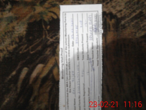 | Attendance Register | Head Teacher | MEA with School | Visit Proof |
