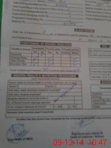 | Certified that this School was Inspected by the Undersigned MEA/DMO Today and the Information Stated Above is as Per Record. | |||||