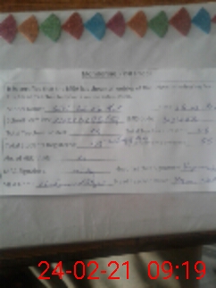 | Total no. of Classrooms: 3 No. of Classrooms Used for Teaching: 1 No. of Classrooms Storing Old Furniture, FTBs, etc: 0Comments if Any: 0 |