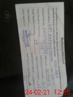 | Certified that this School was Inspected by the Undersigned MEA/DMO Today and the Information Stated Above is as Per Record. | |||||