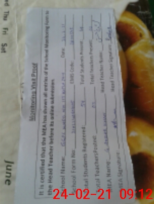 | Attendance Register | Head Teacher | MEA with School | Visit Proof |