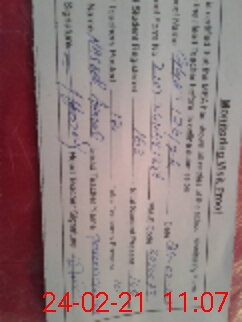 | Monitoring Date: 24-02-2021 | Start Time: 24-02-2021 10:48 AM | End Time: 24-02-2021 11:09 AM | Name of MEA: NA**** AH**** BN**** | |