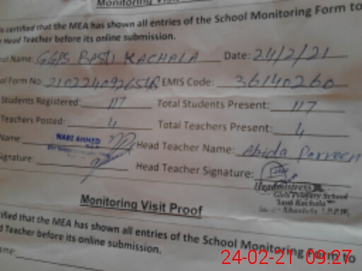 | Certified that this School was Inspected by the Undersigned MEA/DMO Today and the Information Stated Above is as Per Record. | |||||