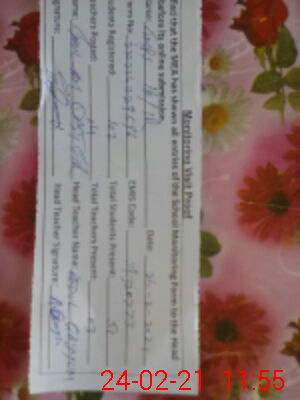 | Certified that this School was Inspected by the Undersigned MEA/DMO Today and the Information Stated Above is as Per Record. | |||||