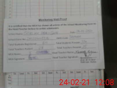 | Certified that this School was Inspected by the Undersigned MEA/DMO Today and the Information Stated Above is as Per Record. | |||||