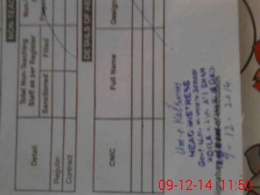 | Name: Na**** Ka**** Designation: (School Headmaster's/Headmistress's) PST Phone/Cell Number: 03**** |