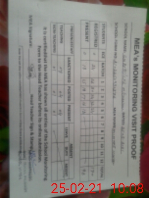 | Monitoring Date: 25-02-2021 | Start Time: 25-02-2021 09:28 AM | End Time: 25-02-2021 10:13 AM | Name of MEA: Mu**** Hu**** on11**** | |
