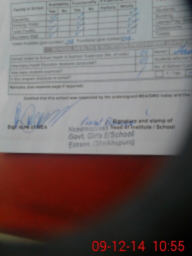 | Certified that this School was Inspected by the Undersigned MEA/DMO Today and the Information Stated Above is as Per Record. | |||||