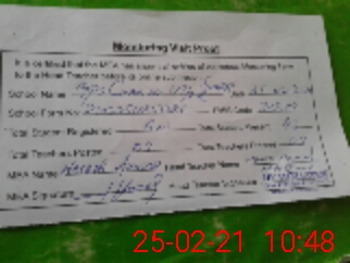 | Attendance Register | Head Teacher | MEA with School | Visit Proof |