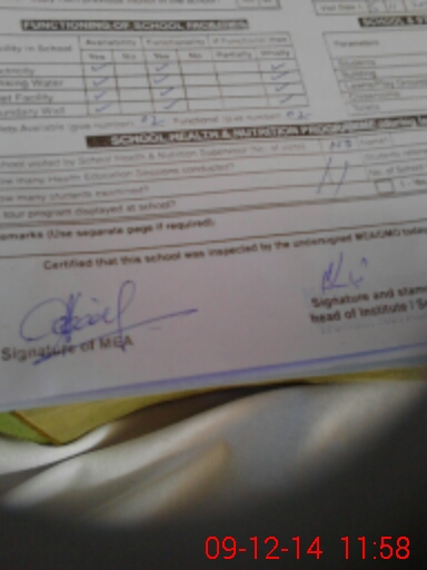 | Certified that this School was Inspected by the Undersigned MEA/DMO Today and the Information Stated Above is as Per Record. | |||||