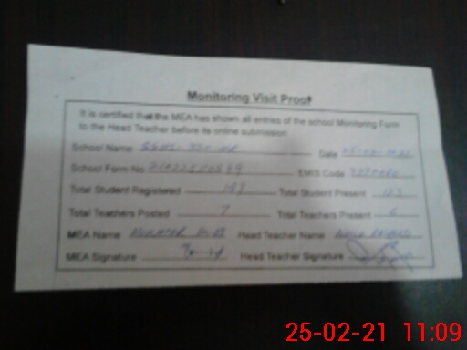 | Certified that this School was Inspected by the Undersigned MEA/DMO Today and the Information Stated Above is as Per Record. | |||||