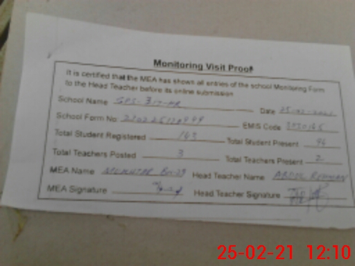 | Certified that this School was Inspected by the Undersigned MEA/DMO Today and the Information Stated Above is as Per Record. | |||||