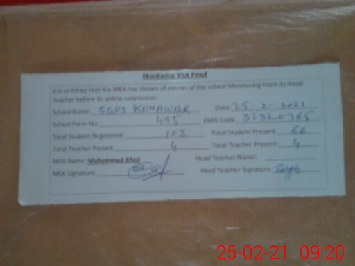 | EMIS Code: 32320365 | Name of School: GGPS KOHAWAR | |||