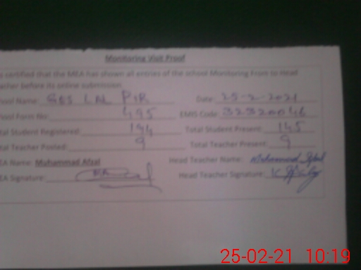 | EMIS Code: 32320046 | Name of School: GES LAL PIR | |||
