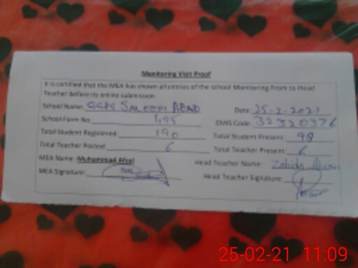 | EMIS Code: 32320376 | Name of School: GGPS SALEEM ABAD | |||