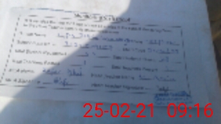 | Monitoring Date: 25-02-2021 | Start Time: 25-02-2021 09:00 AM | End Time: 25-02-2021 09:16 AM | Name of MEA: Za**** Iq**** BN**** | |