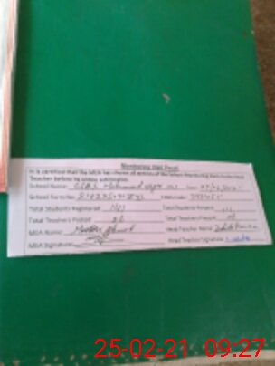 | Attendance Register | Head Teacher | MEA with School | Visit Proof |