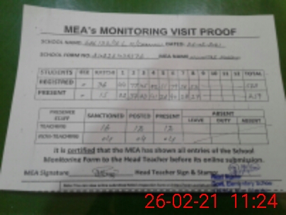 | Attendance Register | Head Teacher | MEA with School | Visit Proof |