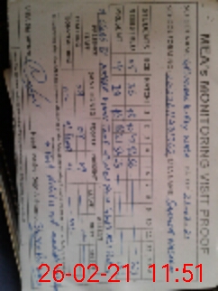 | Monitoring Date: 26-02-2021 | Start Time: 26-02-2021 10:35 AM | End Time: 26-02-2021 12:03 PM | Name of MEA: Sh**** Na**** | |