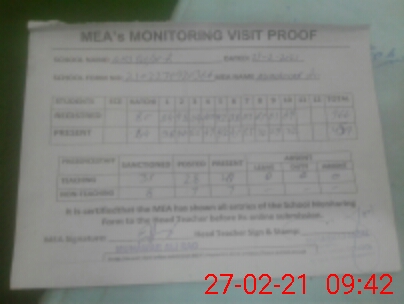 | Attendance Register | Head Teacher | MEA with School | Visit Proof |