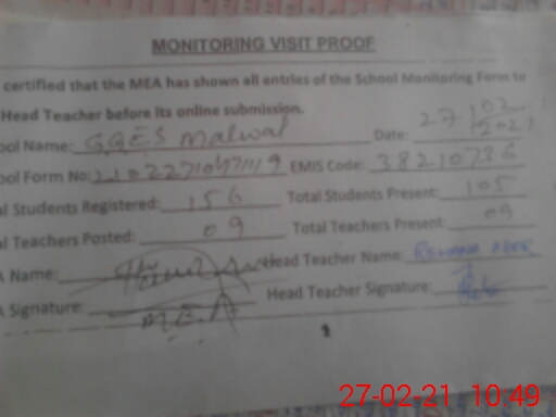 | EMIS Code: 38210736 | Name of School: GGES MALWAL | |||