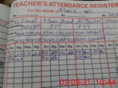 | Name: IR**** AH**** Designation: (School Headmaster's/Headmistress's) PSSP Phone/Cell Number: 03**** |