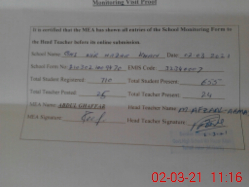 | EMIS Code: 32340007 | Name of School: GHS MIR HAZAR KHAN | |||