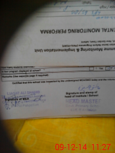 | Certified that this School was Inspected by the Undersigned MEA/DMO Today and the Information Stated Above is as Per Record. | |||||