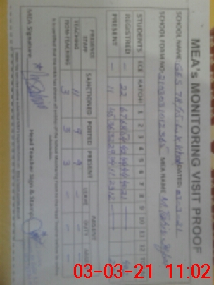 | Attendance Register | Head Teacher | MEA with School | Visit Proof |