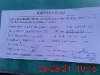 | Monitoring Date: 03-03-2021 | Start Time: 03-03-2021 09:57 AM | End Time: 03-03-2021 10:20 AM | Name of MEA: Mu**** Ah**** | |