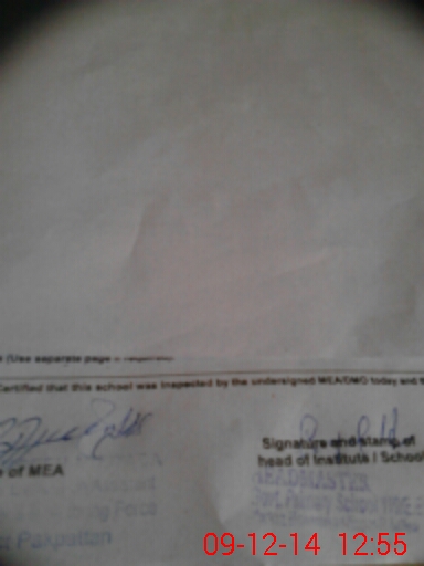 | Certified that this School was Inspected by the Undersigned MEA/DMO Today and the Information Stated Above is as Per Record. | |||||