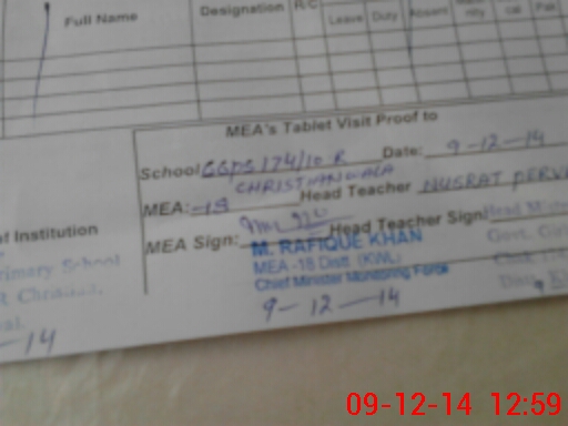 | Attendance Register | Head Teacher | MEA with School | Visit Proof |