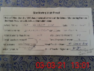 | School Visited by School Health & Nutrition Supervisor (No. of Visits) | Name1: | SAKHAWAT ALI | Name2: | ||