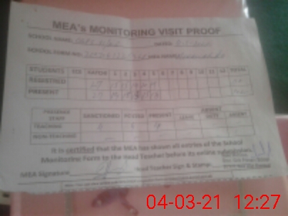 | Attendance Register | Head Teacher | MEA with School | Visit Proof |