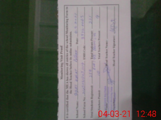 | Certified that this School was Inspected by the Undersigned MEA/DMO Today and the Information Stated Above is as Per Record. | |||||