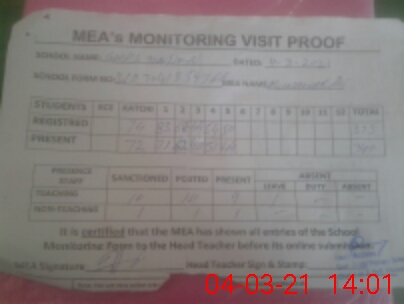 | Certified that this School was Inspected by the Undersigned MEA/DMO Today and the Information Stated Above is as Per Record. | |||||