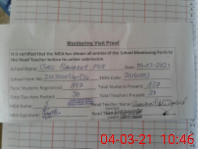 | Attendance Register | Head Teacher | MEA with School | Visit Proof |
