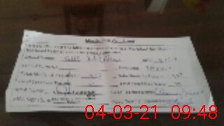 | Monitoring Date: 04-03-2021 | Start Time: 04-03-2021 09:30 AM | End Time: 04-03-2021 09:49 AM | Name of MEA: MU**** AR**** GI**** | |