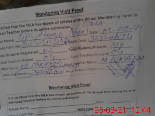 | EMIS Code: 32320674 | Name of School: GPS HAMID NOON WALA | |||