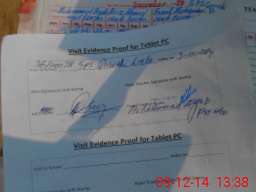 | Attendance Register | Head Teacher | MEA with School | Visit Proof |