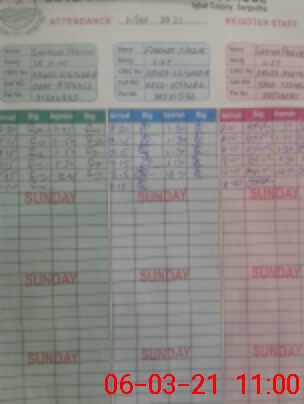 | CNIC | Full Name | Designation | R/C | Absence During Last Calender Month |