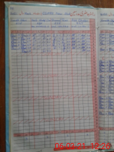 | CNIC | Full Name | Designation | R/C | Absence During Last Calender Month |
