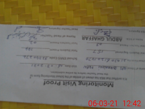 | Attendance Register | Head Teacher | MEA with School | Visit Proof |