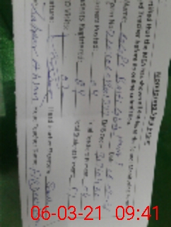 | Monitoring Date: 06-03-2021 | Start Time: 06-03-2021 08:45 AM | End Time: 06-03-2021 09:42 AM | Name of MEA: Za**** Ah**** | |